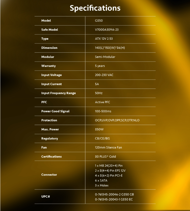 Với 850W, Antec G850 cung cấp điện năng dồi dào cho các cấu hình PC mạnh mẽ, đặc biệt là những hệ thống sử dụng card đồ họa cao cấp, CPU hiệu năng mạnh, bo mạch chủ lớn và nhiều linh kiện khác.