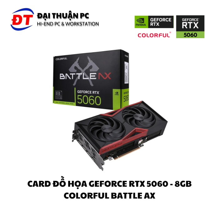 Colorful GeForce RTX 5060 Battle AX DUO 8GB-V là sự kết hợp hoàn hảo giữa giá trị hiệu năng và thiết kế tối ưu, phù hợp cho game thủ phổ thông, người dùng sáng tạo nội dung và hệ thống máy tính làm việc hiệu suất cao. Nếu bạn đang tìm một card đồ họa mạnh mẽ, tiết kiệm điện và hỗ trợ đầy đủ công nghệ NVIDIA mới nhất – đây là lựa chọn đáng đầu tư.