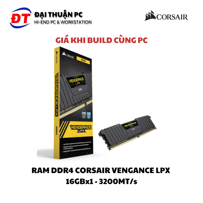 RAM Corsair VENGEANCE LPX 16GB DDR4 3200MT/s hứa hẹn là một linh kiện lý tưởng đáng để bạn đầu tư nâng cấp cho dàn PC. Còn chần chờ gì nữa mà không đến ngay Đại Thuận PC để được mua hàng chính hãng với mức giá ưu đãi hấp dẫn cùng nhiều chương trình khuyến mãi khác nữa như bảo hành 36 tháng, giao hàng miễn phí,…