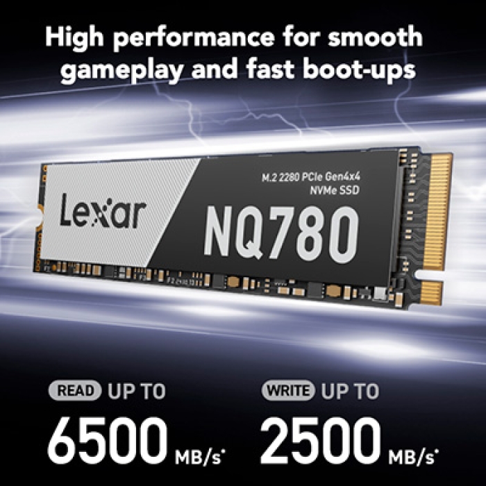 SSD Lexar NQ780 1TB M.2 PCIe Gen4 x4 NVMe LNQ780X001T-RNNNG được trang bị giao tiếp PCIe 4.0 với tốc độ đọc lên đến 6500MB/s và ghi đạt 2500MB/s, giúp xử lý nhanh chóng các tác vụ từ khởi động hệ điều hành, tải ứng dụng nặng cho tới chơi game và chỉnh sửa video. So với HDD truyền thống và thậm chí nhiều dòng SSD SATA, hiệu suất của NQ780 vượt trội, mang lại trải nghiệm mượt mà, giảm thiểu tối đa độ trễ, phù hợp cho người dùng văn phòng, game thủ và dân sáng tạo nội dung cần tốc độ cao.